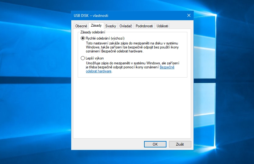 Dobrý den. Mám asi týden nový notebook Acer Aspire A315 s W10. Před chvílí jsem chtěl odpojit flash disk a přestože ráno bylo vše OK, tak mi to při kliknutí na ikonu na hlavním panelu sice ukázalo bezpečně odebrat zařízení, ale po kliknutí se neozval zvuk ani se neobjevila bublina, ve které je, že nyní mohu zařízení bezpečne odebrat, ale zmizela ikona z hlavního panelu. Šel jsem tedy do start→ nastavení→ zařízení a tam jsem našel ten USB disk. Po kliknutí na USB disk se objevila nabídka odebrat, což znamená, že odebrán nebyl, ani když z hlavního panelu zmizela ikona připojeného zařízení. A vedle toho byla hláška chyba ovladače. Šel jsem do správce zařízení a tam našel všechny 3 porty, které v notebooku jsou. U všech je napsáno ve vlastnostech, že pracují správně a po kliknutí na aktualzaci ovladačů to píše, že ovladače jsou aktuální. Vyzkoušel jsem připojit několik flash disků a u všech je to stejné jak popisuji. Také nevím, co je myšleno chybou ovladače. Flash disků nebo portů? Nevěřím, že by najednou byly poškozené ovladače u všech USB disků. Jinak soubory se načtou jak v notebooku, tak na televizi a přehrávají se normálně. Zkusil jsem pouze restart a nepomohlo. Děkuji za radu jak opravit.
