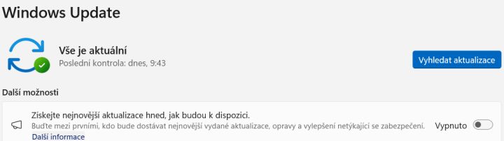 Mám od listopadu nový počítač s Windows 11 Pro. Po prvním spuštění a ponastavovaní toho Windows mi to nabidlo aktualizaci což jsem nechal provést. Nyní bych měl mít podle toho co mi ukazuje winver.exe mit verzi Windows 11 23H2. Když si nechám vychledat aktualizace tak mi to vychledá a nabízi aktualizaci 24H2 a někdy 25H2. Když kliknu na "Stáhnout a nainstalovat" tak se nic nezačne stahovat a nic nenainstaluje a po chvíli se to zruši. Zkoušel jsem to už vícekrát, ale vždy je to se stejným výsledkem. Někde jsem četl, že aktualizace na 25H2 vyžaduje mít předtím nainstalovanou 24H2, ale ani na tuto mi nejde Windows aktualizovat. Zajímá mne proč mi nejde stáhnout a nainstalovat aktualizace a co s tím tak abych mohl Windows aktualizovat.