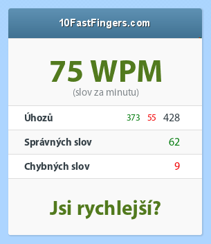 10fastfingers.com/... Není to tam. Škoda. Mám 240 úhozů a 95,47%.