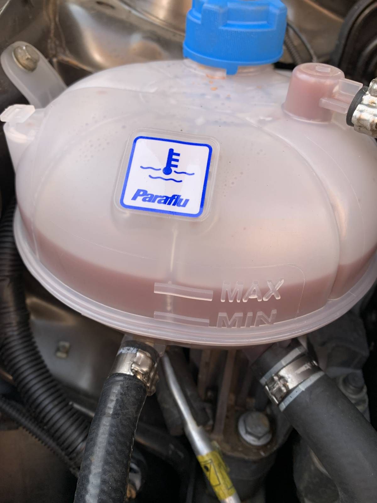 Vypustil jsem hnusnou kapalinu, dal tam vodu a čistič chladiče a pískání přestalo, takže jsme usoudili, že to byla vodní pumba. Nicméně jsme to vypustili ten hnus, nalili tam rovnou G12, proplach jsme neřešili, kdyžtak to za za týden vypustím a propláchnu..ale! I když byl motor zahřátej tak se z výfuku kouří a když jsme chtěli dolít pak vodu, tak se ta nádoba dost natlakovala..voda se zvedla nahoru. Tak kamoš udělal tlakovou zkoušku a ta modrá kapalina mu zezelenala, takže těsnění pod hlavou asi RIP.