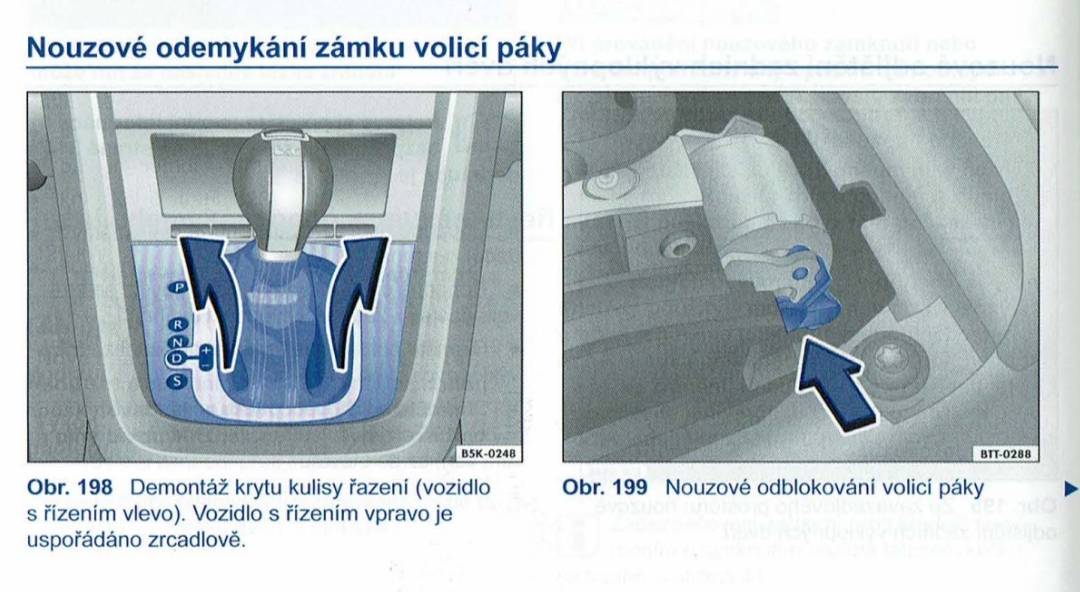 Řazení lze odblokovat k vůli transportnímu režimu. Páka pak jde z P na N.