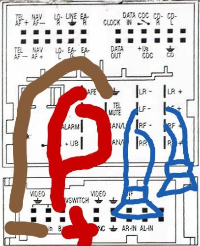 Spínané plus rádio nemá. Budí se totiž autem po CAN digitální informací po těch tenkých oranžových. Na ty nesahej.