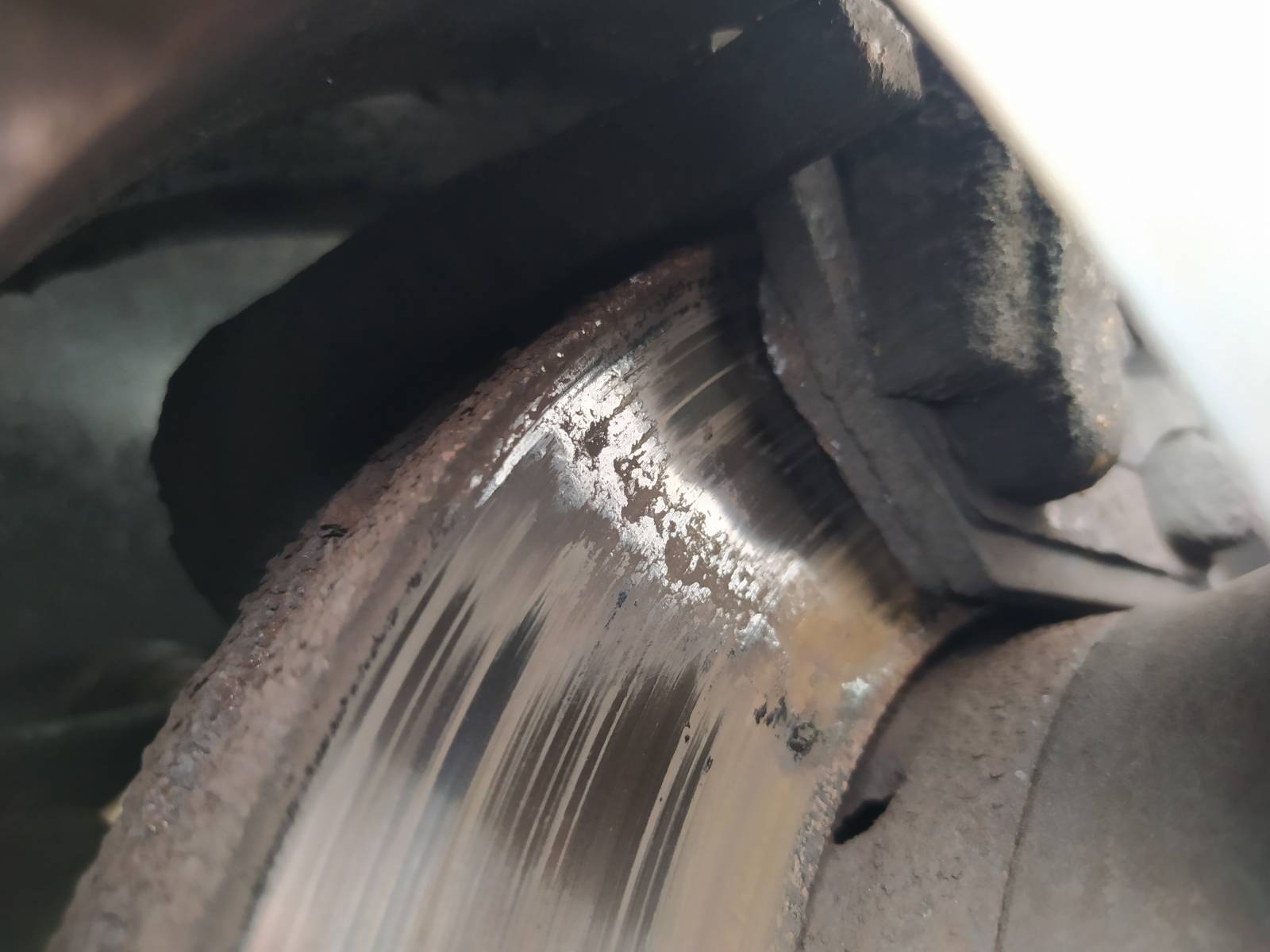 Pístky toto musí kompenzovat a víc čumí ze třmenu. I harmonika prachovky je více vytažená a pokud je stará, tak i většinou naprasklá a pístek, jak čumí zbytečně moc ven, tak orezne a při vracení zpět, když se rozhodne třeba po roce vyměnit nové kotouče s deskama, tak tím oreznutým zajede až do hloubky třmenu a zničí tam gumičku. Pak bude kouslej, bude se špatně vracet, kolo přibržďovat a nebo to rovnou poteče a je to na repas či výměnu třmenů.