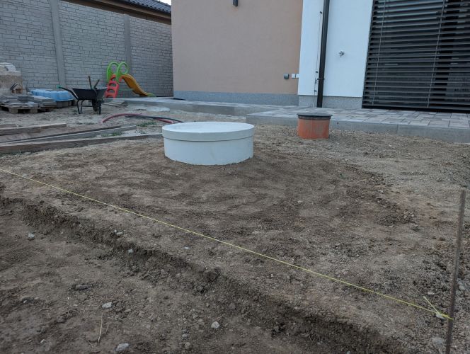 Během hrubé stavby jsem nechal za barák vytáhnout kabel pro studnu (čerpadlo), závlahu a kabel navíc. Teď mám k terase a dozadu k budoucímu zahr.domku natahané kopoflex po dvou kabelech (pro jistotu). V šachtě bude elektroinst.krabice, kde se propojí co bude třeba. Nechtěl jsem dávat el.krabici jen tak ven, proto vše do šachty pod strop kde to nebude překážet. Stejně bych tam tahal kabel pro vystrojení studny.