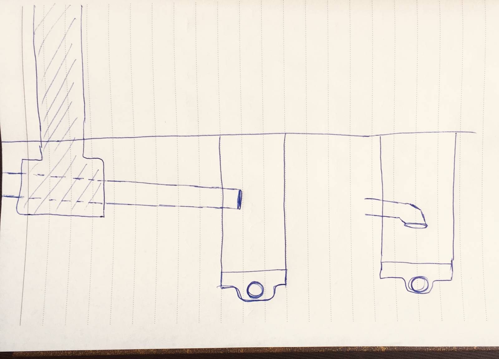 Je-li ta šipka jaký bude i budoucí směr odtoku tak ideálně provést (červené) potrubí v podlaze, viz můj obrázek, případně modře; záleží na uspořádání vybavení místností. Zatočit potrubí tak, aby se tekutina v ní co nejméně namáhala s otáčením a tedy aji případným ucpáním.