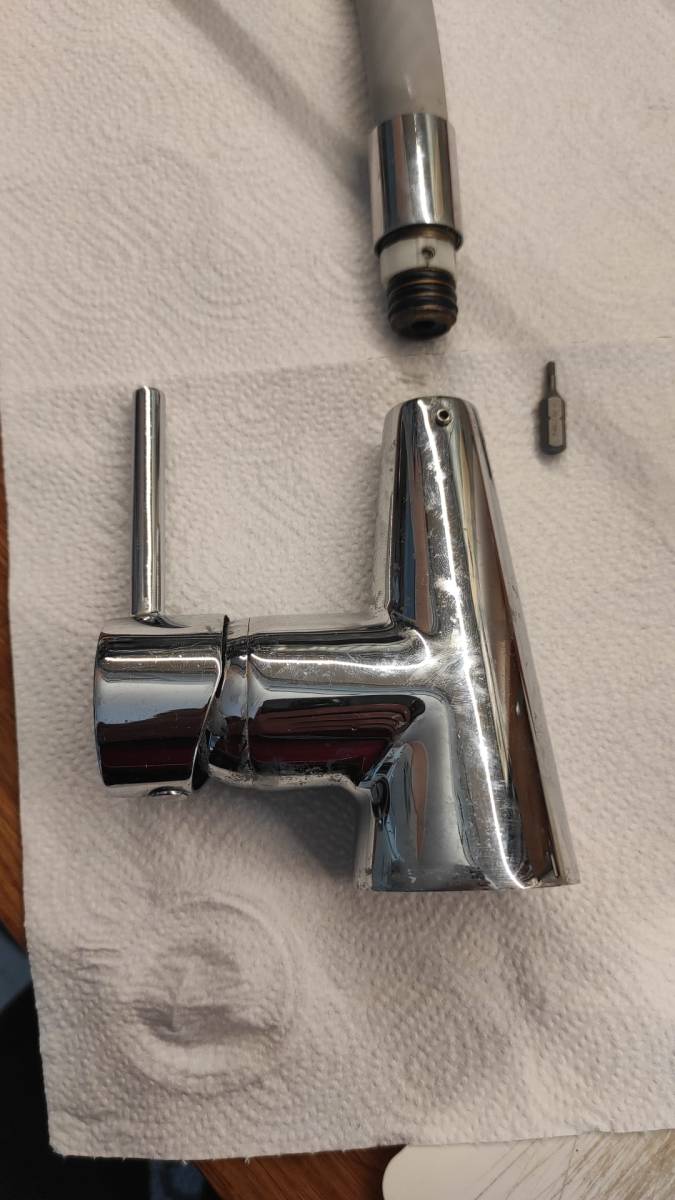 Dnes jsem rozebral hodně podobnou baterii s flexibilním výtokem. Stačí vyšroubovat jeden červík a výtokovou hadici máme mimo vlastní baterii; těsněním jsou TŘI o-kroužky... kryty jsou na závit ... více foto