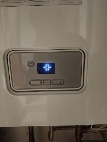 Asi po hodině a půl vytápění kondenzačním kotlem s teplotou nastavenou na 45°C z důvodu nejvyšší účinnosti kotle (kondenzát tekl jak divý) se objevila tato ikonka. Teď kotel netopí a je zticha.
