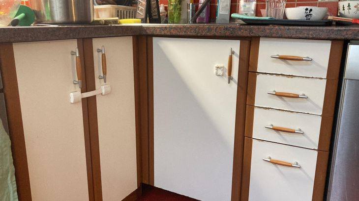 Tam vůbec nemusí být tato kombinace - prostě necháte vyměnit všechna čela buď jen šuplíků nebo komplet všech skříněk.