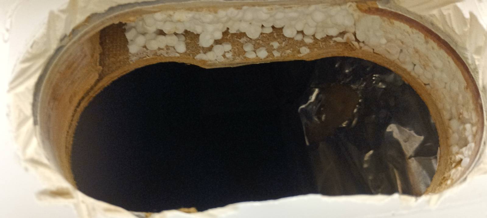 ten polystyrén je tam na dobré zahoření..to vymyslel hodně dobrý odborník.doporučoval bych prohlédnout i ty zásuvky nad tím spáleným ...