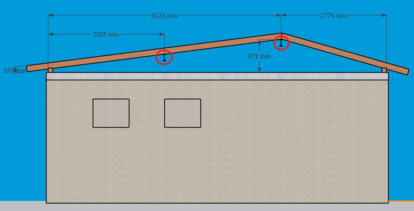 stavím dílnu a přemýšlím jak nejlépe vyřešit střechu. Dílna má půdorys 7 x 9m a střecha bude sedlová nesymetrická, dle nákresu. Krytina bude plechová.