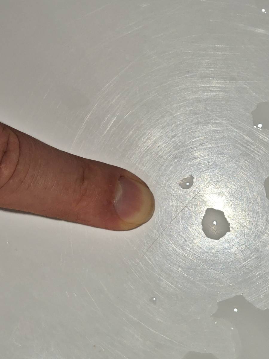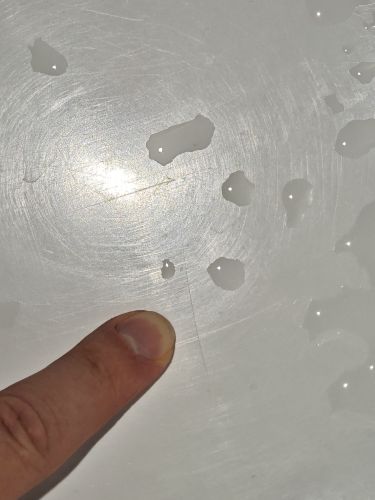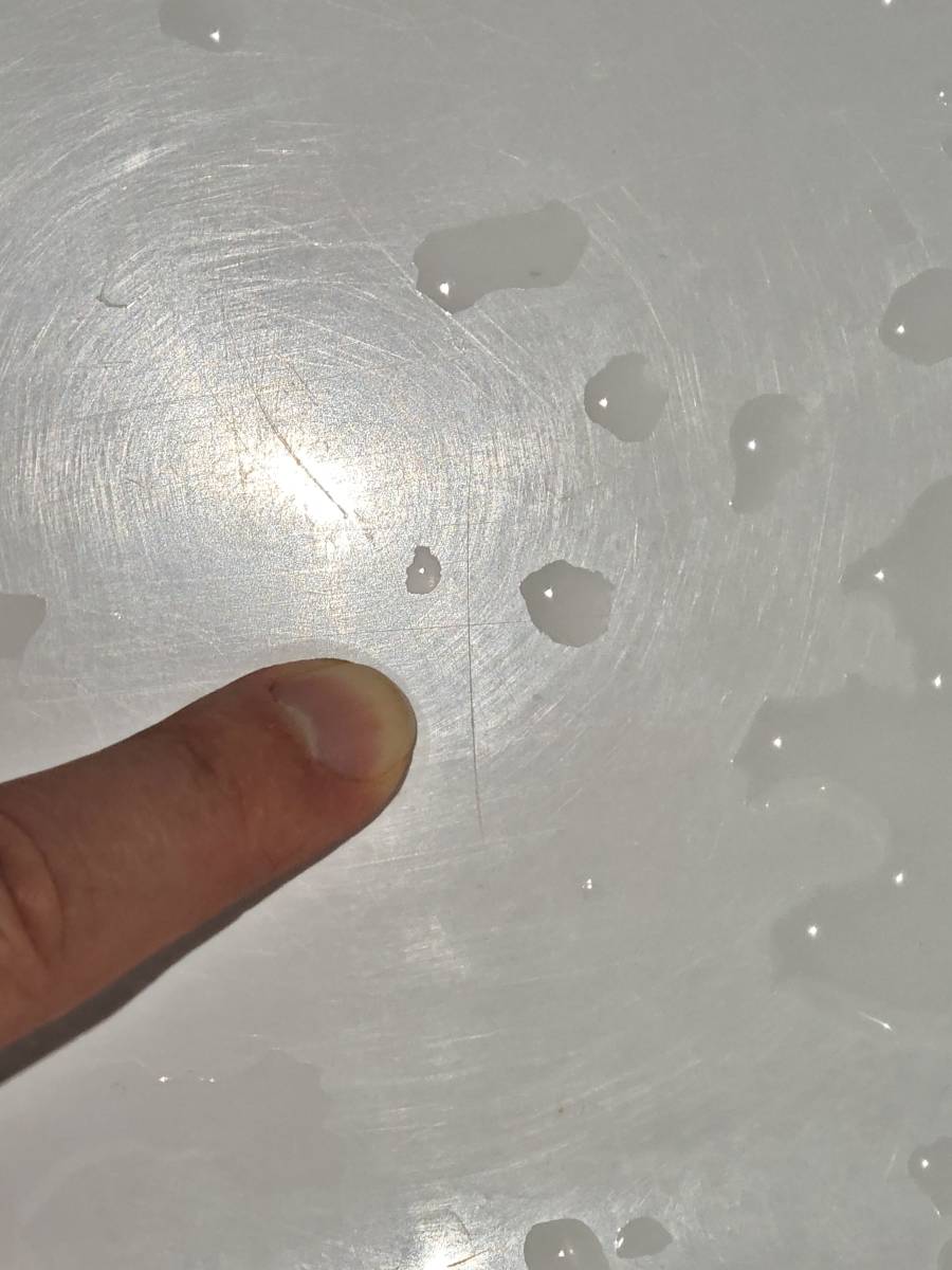 Zdravím, v nájemním bytě jsem objevil v plastové/akrylátové vaně rýhu nebo škrábanec na dně vany. Je to problém a měl bych to nějak řešit? Je to vidět pouze když se na to člověk velmi zaměří a pod světlem. Na fotkách je to pod 5x zoomem, jinak to ani nejde vyfotit. Předpokládám, že to je pouze kosmetická záležitost a nemá cenu nějak opravovat. Je to tam už asi 2 měsíce a nijak se to nerozlišuje, takže prasknout by to nemělo a tím nemůže téct voda. Je tak? Díky za uklidnění