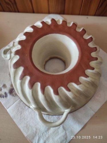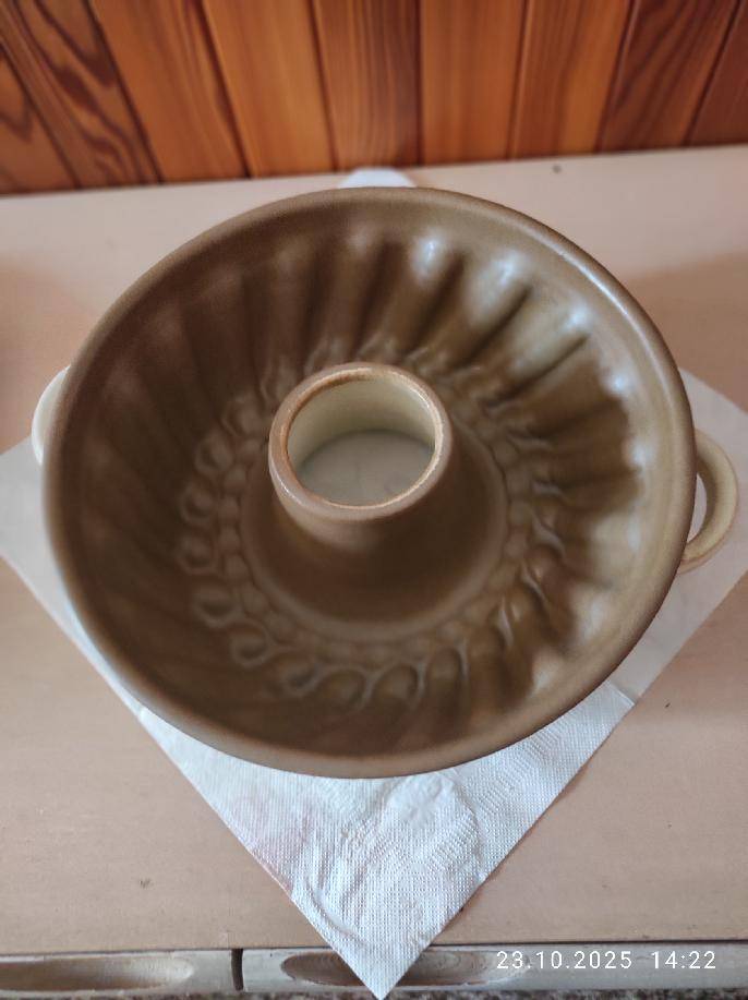 Když se odstěhovali mladí, tak tu nechali nějaké nádobí a mezi nimi novou bábovkovou formu, ručně vyrobenou a koupenou zřejmě z nějakého trhu.