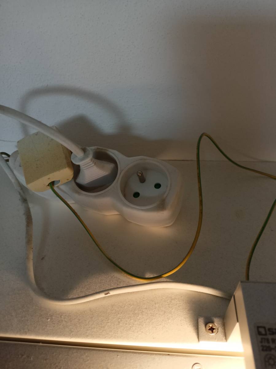 Ze světla vede dvojžílový kabel ukončený vidličkou a jeden zelenožlutý PE. Nepochopil jsem kam s tím zelenožlutým tak jsem to vykoumal takto ![]()