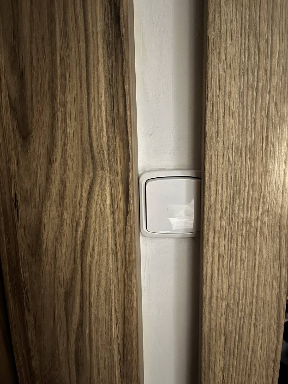 Ideálně dát "užší"dřevo co je vlevo od vypínače a vypínač s krabičkou posunout o ten centimetr a půl vlevo, pokud nechceš velké změny. Jinak by šlo přendat i vypínač jinam nebo dát vypínač/přepínač od Schnaidera, šířka cca 5 cm, jiný vzhled, menší klapka, jiná krabička ve zdi vypinac.cz/...