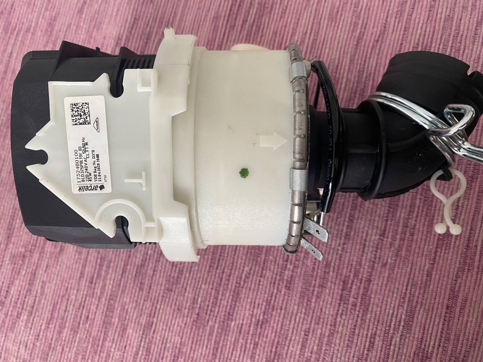 Je to kombinace čerpadla a topné spirály a je to dost častý problém levných myček. Koukám na inovaci ve sponě, dříve tam byla klasická pásková hadicovka a teď je tam drátová spona..