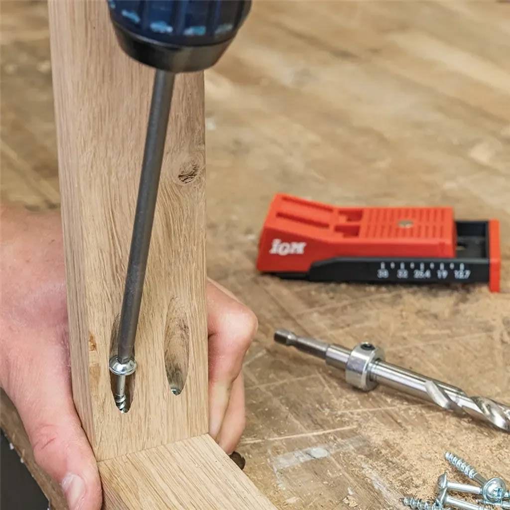 Paní píše, že to neumí a její syn to také neumí (musí se pokusit), pro takovéto "kutily" jsou ideální přípravky, které neumožní vyvrtat to křivě. Právě tenhle přípravek to vyvrtá ideálně doprostřed a vše drží, protože prošroubujete jak nohu, tak to spodní prkno až do desky stolu. Na té noze není moc materiálu navíc a jak se trochu ujede s vrtákem, tak to nebude držet dobře. Zavětrovací úhelníky tam mají ještě překážku v tom spodním prkně a bude se to muset ještě doladit. Stále si myslím, že nejlepší poměr kvalita/jednoduchost je vyvrtat přípravkem, namazat lepidlem a utáhnout vruty. Jinak ten vrták u přípravku je speciální pro tyto účely.