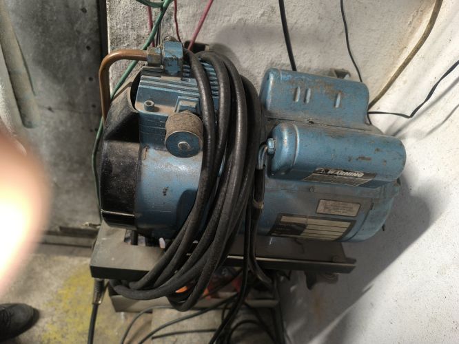 Ve vetešnictví jsem koupil dvouválcový orlík, kompresor i s třífázovým motorem.Od známého jsem dostal 100l nádobu, na kterou jsem nahoru mompresor přidělal. Opletenou hadicí jsem propojil kompresor s nádobou. Nádoba měla tlakový spínač, i regulátor tlaku na výstupu. Tohle se vyplatilo, aleblbosti z kufříků nebo hasičáků a kompresorů z ledniček jsou tak pro doktora.