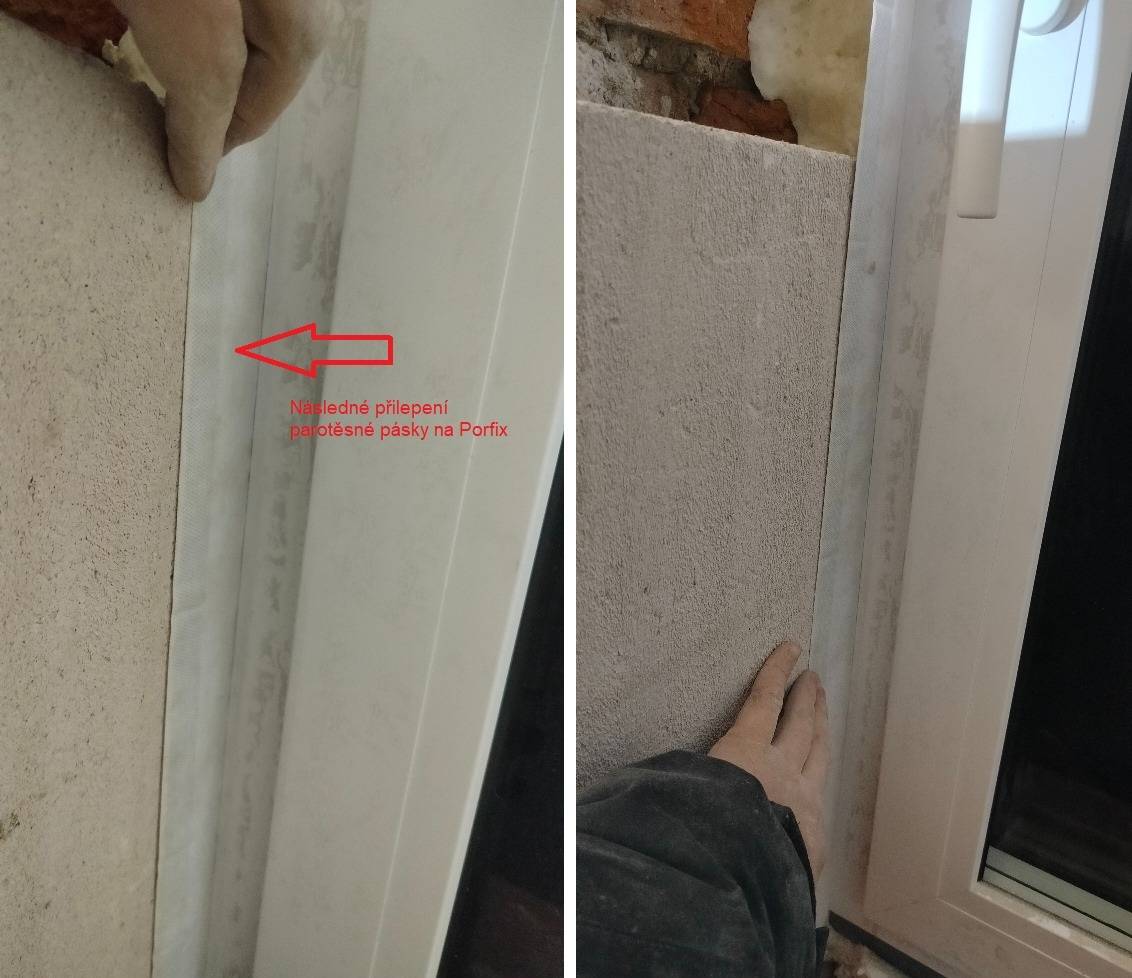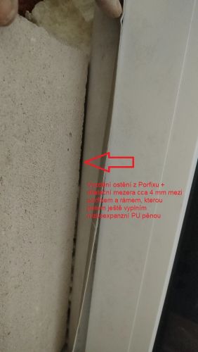 Můj plán je takový. Přebytečnou pěnu jsem zařízl zároveň s rámem, mezi porfixem a rámem ještě nechám dilatační spáru cca 4 mm, kterou potom ještě vyplním nízkoexpanzní pěnou, následně na porfix přilepím parotěsnou pásku. Následně dám APU lištu a zatáhnu špaletu do lepidla a perlinky a finálně štuk. Je toto zapravení ok?