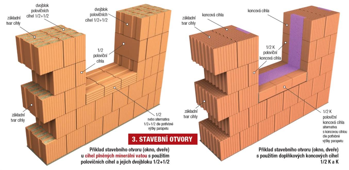 Tak jsem se dovzdělal googlením a používá se poloviční a koncová cihla k tomuto účelu.