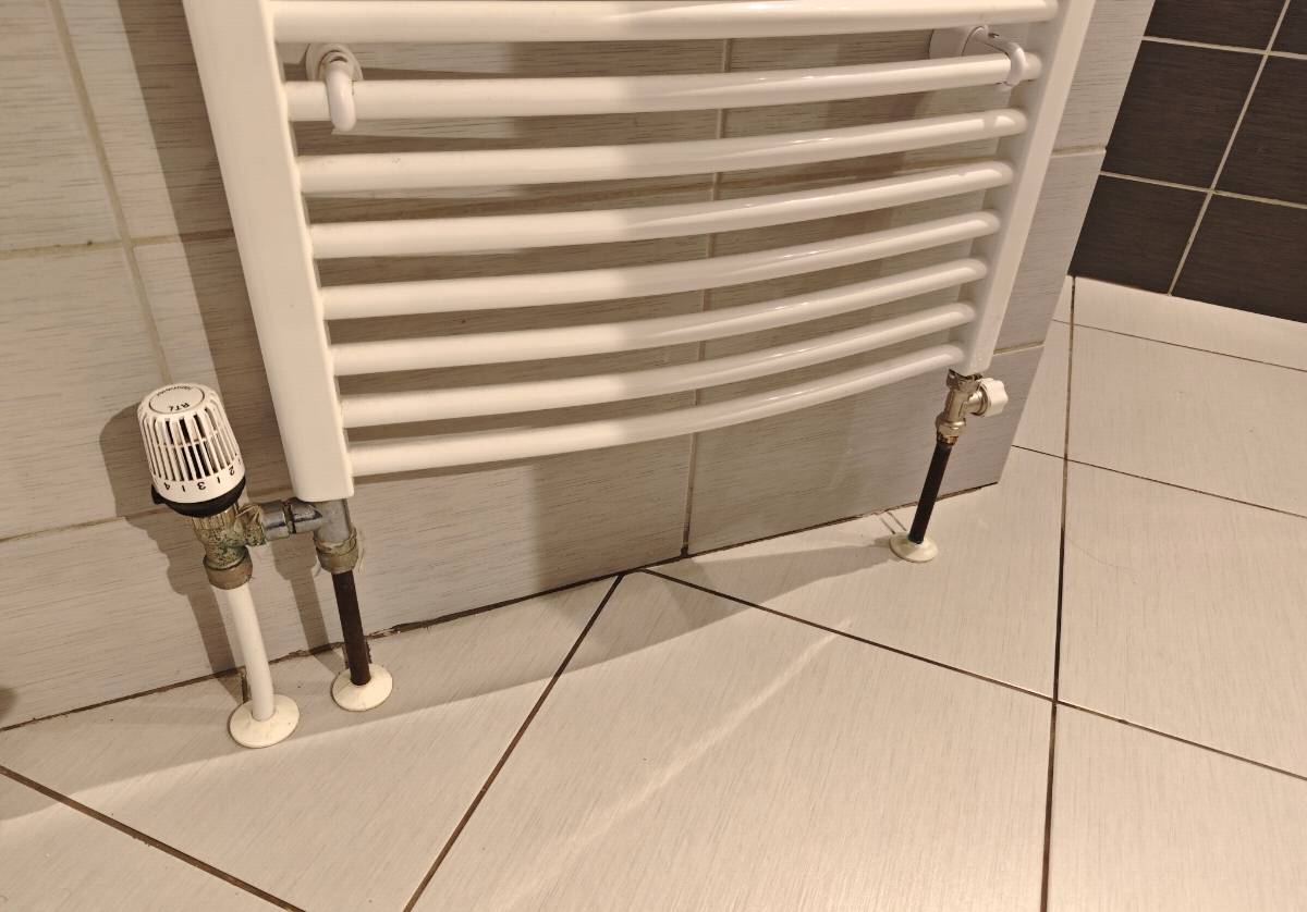 Máme ten domek od léta. Zjistil jsem že to netopí v září až jsme poprvé pustili kotel (plyn kondenzační). Horká trubka je i teď po výměně ventilu prostě po ten ventil, dál od ventilu nahoru se to malinko zlepšilo ale opravdu málo. Je to jen trošku teplejší než lidské tělo proto to skoro nepoznám ze to "topí". Takže to nemá šanci vyhřát ani tu podlahu protože tam do ní vede vratka vody.