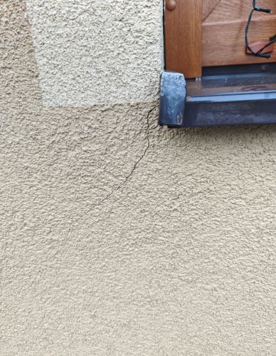 Dobrý den, objevil jsem čistou náhodou tuhle prasklinu na zateplené fasádě. Co to značí? Máme to řešit? Původem je dům hodně starý a máme vodu ve sklepě.