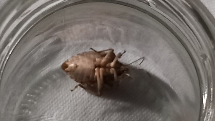 Dnes ráno jsem nalezl v posteli tohoto brouka. Dal jsem ho so sklenice a vyfotil z obou stran. Hned mě napadlo, jestli nejde o štěnici. Díval jsem se na obrázky štěnic na Googlu a viděl, že mívají na zádech pruhy, což zde nevidím, tvar ale odpovídá. Co si o tom myslíte?