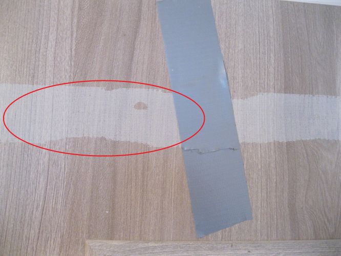Já bych podle té fotky tipoval spíš na to, žes s izolepou strhl i nějakou vrstvu bezbarvého laku ze dveří. Ale snad se pletu.