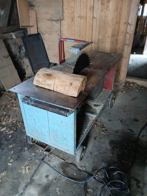 Tzn. Že se pilový kotouč točil směrem k obsluze viz. Fotka se dřevem. A zuby se zařezávali do dřeva.