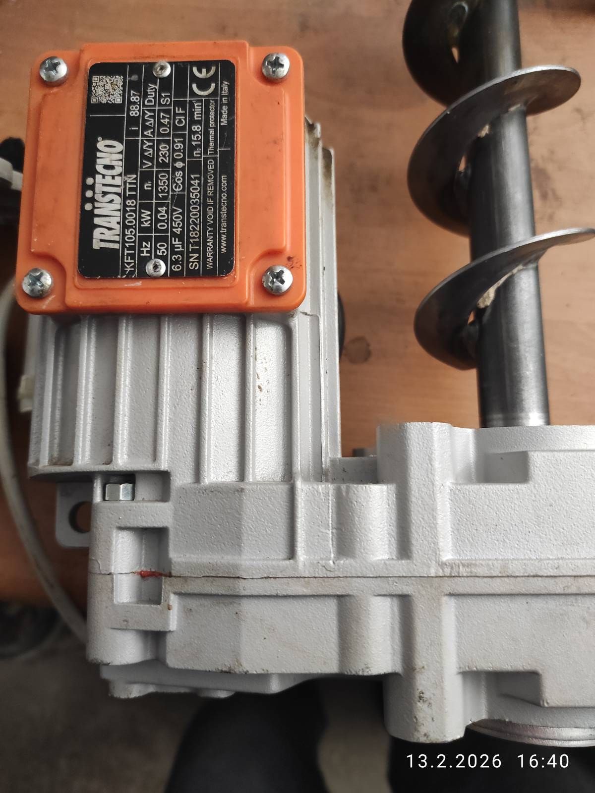 doplněno 13.02.26 16:55: Pro informaci, jedná se o podavač pelet č.2 do hořáku kotle Ponast 11.1, v provozu od roku 2021/22 ..