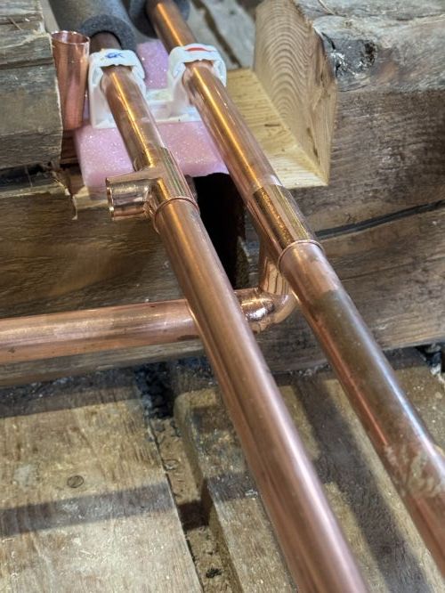Dělám rozvody topení v mědi řeším ,,obejiti” přes vedlejší potrubí všude jsem šel cestou vrchem. Teď kvůli výšce budoucí podlahy by pro mě bylo nejjednodušší jít cestou dolu viz fotografie. Je to nějaký zásadní problém funkční? Je to na na potrubí na přívodu.