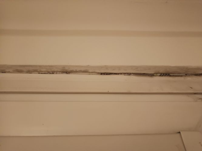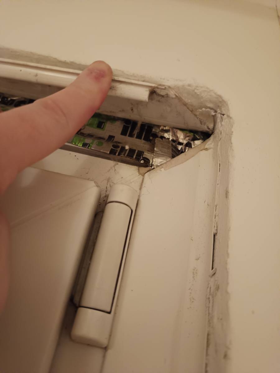 byl jsem nedáno se známým na prohlídce bytu a krom jiného mě zaujalo prpvedení oken. Okna byla v minulosti vyměněná za plastová ale přijde mi, že okno bylo trochu menší než samotný otvor a řemeslníci to vyřešili přelepním folie nebo nějaké pásky a na to dali těsnící lištu. Ta ale už netěsní a na horní straně okna se asi tvoří plíseň - viz foto. Když jsem zkoušel lehce na pásku zatlačit, prohýbala se. Tipuju tak, že utěsnění bude nedostatečné a jen aby okno drželo.
