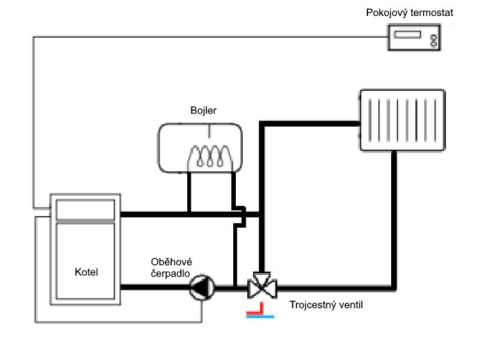 . Nelze topit pouze pro bojler. Přebytky tepla budou přepuštěny do radiátorů.