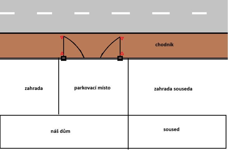 Raději si naspořte na jiné řešení. Na majáky nemůžete absolutně spoléhat a pořád je risk střetu s chodcem. I kdyby ta brána zareagovala na chodce, co se stane, zastaví se na místě, chodec do ní narazí a dál? Je to pořád vaše zodpovědnost. Do prostoru zahrady vlevo se nevejde posuvné křídlo?