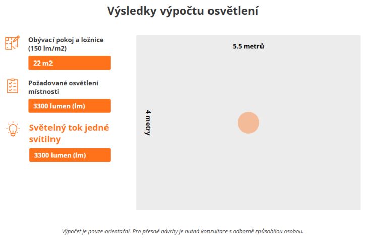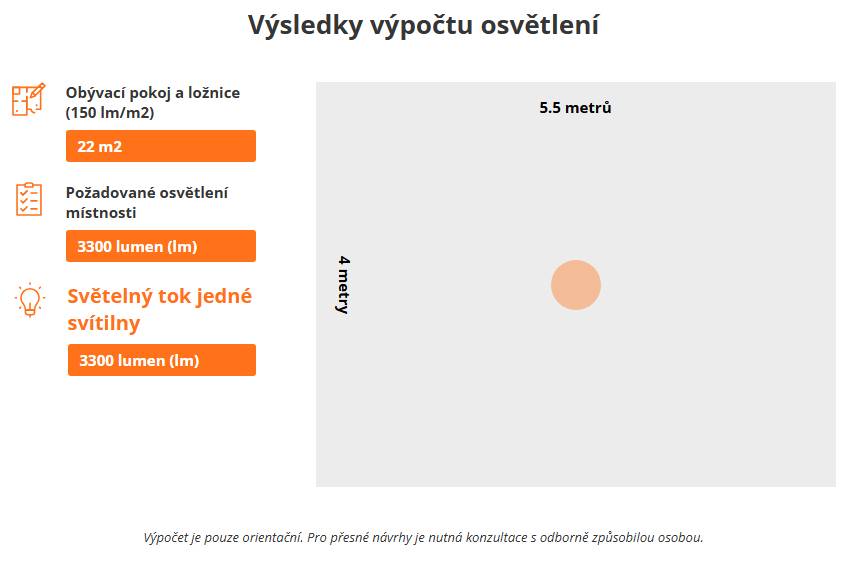 Záleží na druhu místnosti (rozměry, výška), druhu činnosti a světelném toku [lumen - lm]