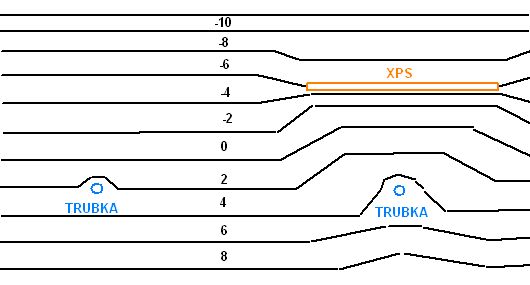 při výkopech jem zjistil, že ocelová vodovodní trubka od darlingu do domu vede sotva 50 cm pod zemí, jednom úseku možná i míň. Dříve nad ní byla hospodářská budova, nevytápěná, ale přece jen zvyšovala průměrnou teplotu a suchá půda lépe izolovala. Sice jsme na JM u Brna, ale při poslední zimě, kdy se týdny držely teploty pod nulou a v noci bylo i kolem -14°C jsem znervózněl a nechával jsem vodu raději kapat. Výměnu trubky zatím neplánuji, stejně asi bude nahrazena obecním vodovodem, ale napadlo mě v nekritičtějším místě, kde je trubka nejblíže povrchu, zakopat XPS desky. Vycházím z toho, že v zimě půda promrzá shora a zámrzný mod se postupně posouvá do hloubky, kde oproti němu jde teplo země (i Země) a menší oblast půdy kolem trubky je i trochu vyhřátá prútokem vody. Myslíte, že to může pomoct?