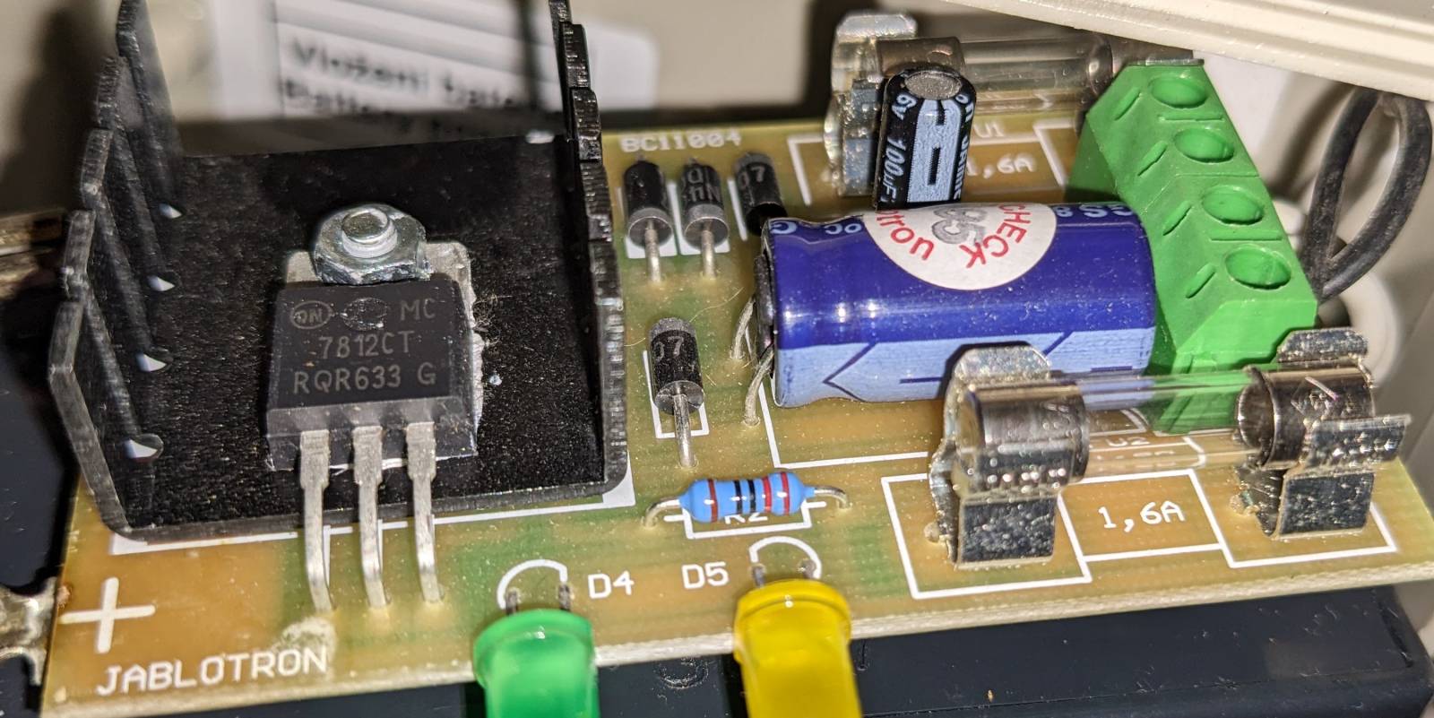 Pro příště bych tam dal odpor 5W a né 0,6W jako Jablotron i když on to asi myslel dobře, protože zafungoval i jako pojistka.