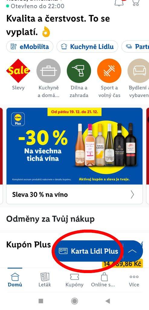 Zdravím.Mám nainstalovanou aplikaci Lidlplus,ale asi jsem dost analfabet,co se týká chytrého telefonu.Zkrátka nevím,kde hledat Qr kod,nebo co se to vlastně přikládá ke čtečce u pokladny.Když po otevření aplikace kliknu dole na kartu,dá mě na výber mezi seznamem nákupu a účtenkama.Díky za reakce.