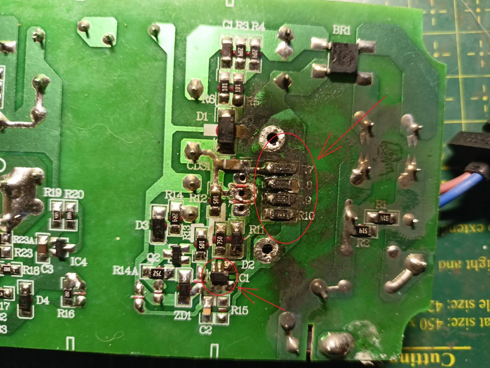 Pokud netrpíš tím, že prostě musíš nad tou závadou zvítězit a dokázat si že jsi šikovnej, tak je asi praktičtější opravdu si za 450Kč koupit novou. Z životních zkušeností mám až na výjimku názor, že vyhořelé součástky nejsou zpravidla příčinou závady, ale důsledkem...