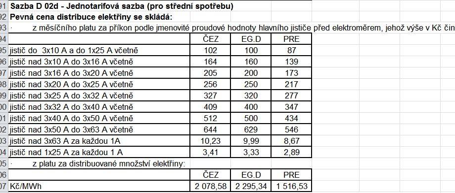 Za jednofázové jističe, až do hodnoty 25 A se dle cenového výměru ERÚ platí stále stejná částka, bez ohledu na proudovou hodnotu jističe. U distributora ČEZ a sazby D02d je to 102,- Kč. U jističe nad 25 A se podle téhož cenového výměru platí 3,41 Kč za každou 1 A. Jak vidím, tak to nemůžete nalézt, přikládám přísl. výměr.