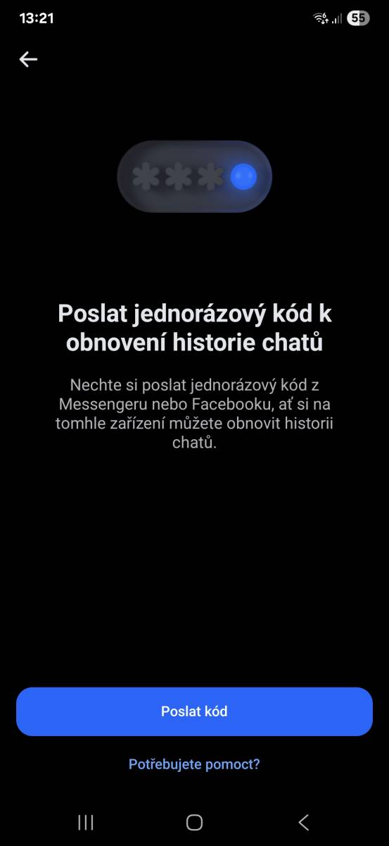 nemohu se dostat k záloham chatu na messengeru. Telefon (Samsung) jsme musel resetovat do továrního nastavení a teď nelze obnovit zálohu na Messengeru. Posila to kód, který ale nikam nepřichází a ani žádná jiná varianta nefunguje.