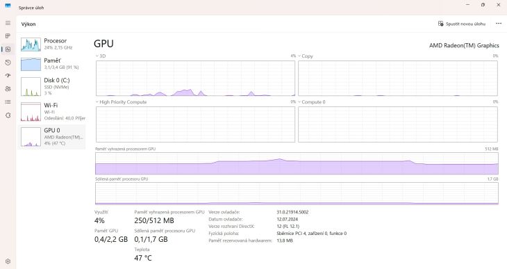 Podivné je, že je použitelné jen 3.4 G, to bývalo u 32 bitových systémů, kde adresní prostor nestačil na 4 giga, protože ho sdílí i periferie (které obsazovaly ten zbytek). Pak tu bylo nějaké licenční omezení (windows 7 home měl snad 16 giga), ale to je u desítek větší. Vlastně jeden nápad mám, neubírá těch 500 mega grafická paměť? Pak by se mohla zmenšit sdílená paměť, troufám si tvrdit, že na takovém stroji nepotřebujete 500 mega grafické paměti, tím získáte o něco málo ramky navíc (byť to budou drobné).