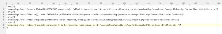 Měl jsem tušení, že zdejší upload souborů je rozbitý, když jeden z tazatelů sem v prosinci nahrál excelový soubor a obsah toho, co se stáhlo, byl velice podobný.