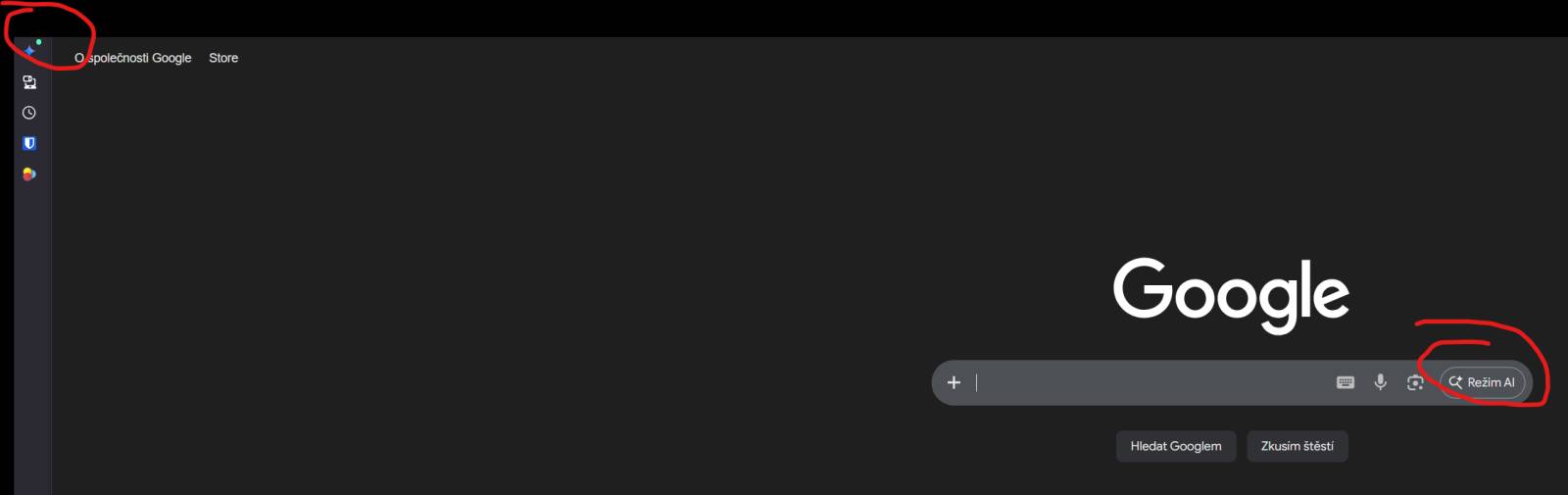 Co se týká AI, tak už poměrně dlouho se mi zobrazuje přímo ve vyhledávacím řádku na konci (viz obrázek). Zrovna jsem to zkoušel v Google Chrome a Microsoft Edge... až budu doma, zkusím ještě Firefox a Operu.
