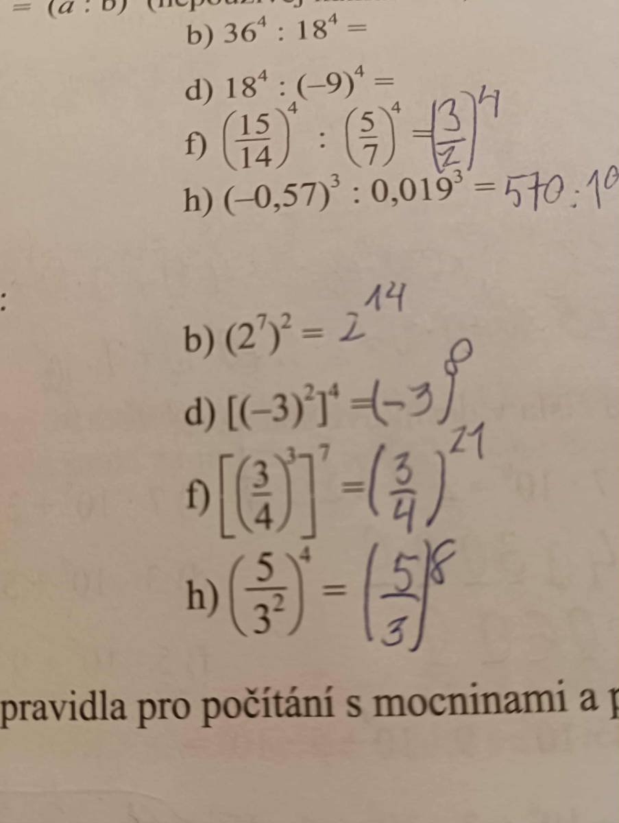 Moc poprosím o radu, jak se počítá mocnina tohoto zlomku - mám příklad f a h (spodní sloupek) dobře? Děkuji za radu