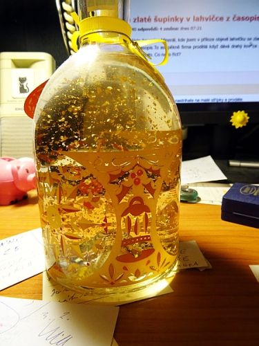 Zlato je výborně kujné, takže není problém udělat plíšek několik mikrometrů silný. V té lahvičce to pak vypadá půdobivě, protože tam plavou relativně velké kusy, ale téměř nulové tloušťky. Je to pěkná dekorace, ale zlata tam bude v řádu miligramů, takže koupit stovky těch časopisů a zlato dát do výkupu se určitě nevyplatí.