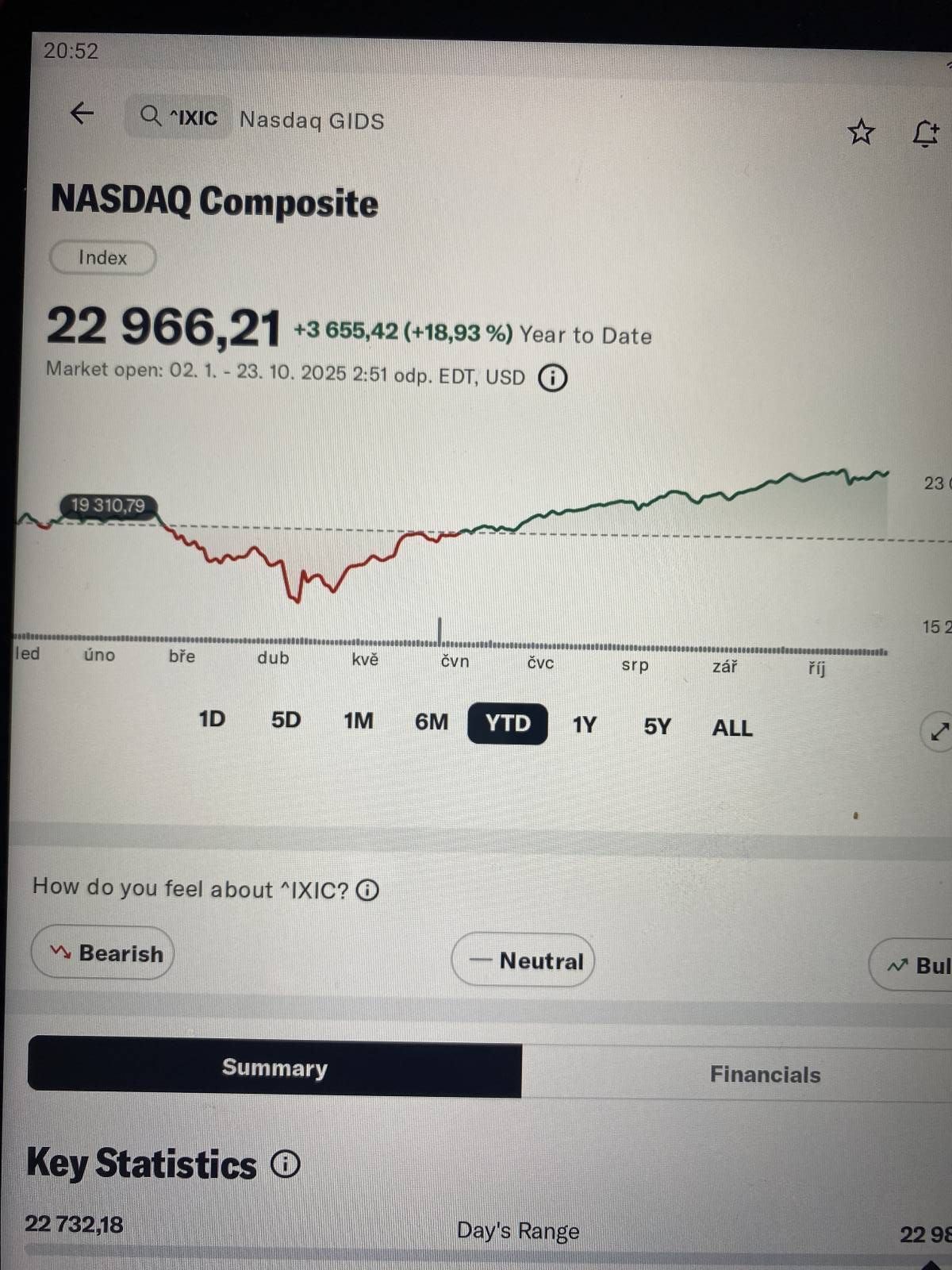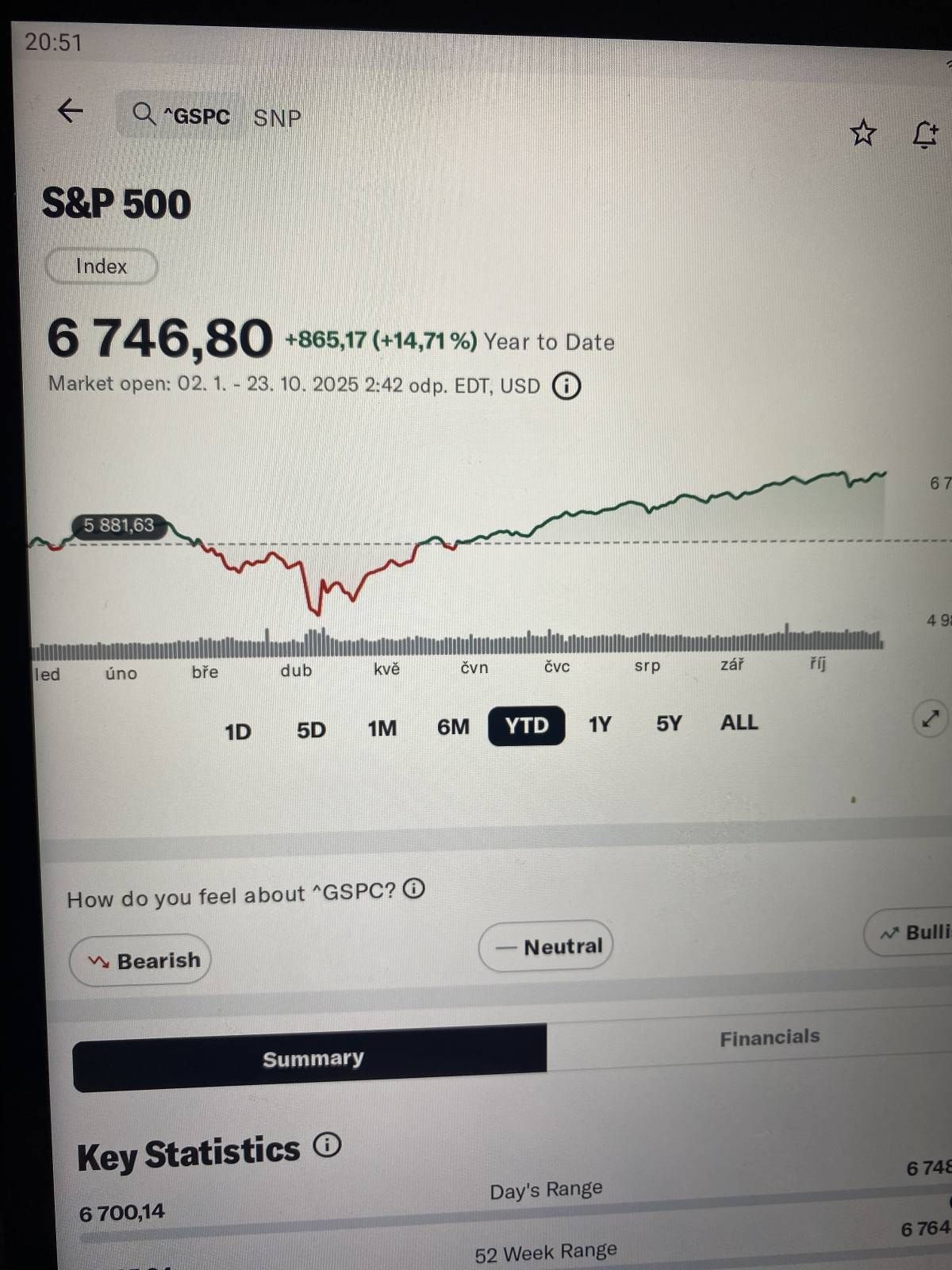 a neumím to CNDX.UK a CSPX.UK mě teda od konce unora rostl o cca 13% a 10% když zohledním propad dolaru vuči koruně při nakupu a vše kolem... a to jsou ty nejziskovější z portfolia Myslím že sem v mínusu. Shcvalně jsem se ted koukal na pozice, u eura to je podobné nekteré nakupy se dkonce nedostaly jeste ani do plusu natož na alespon 3 % rust jako u banky na spu