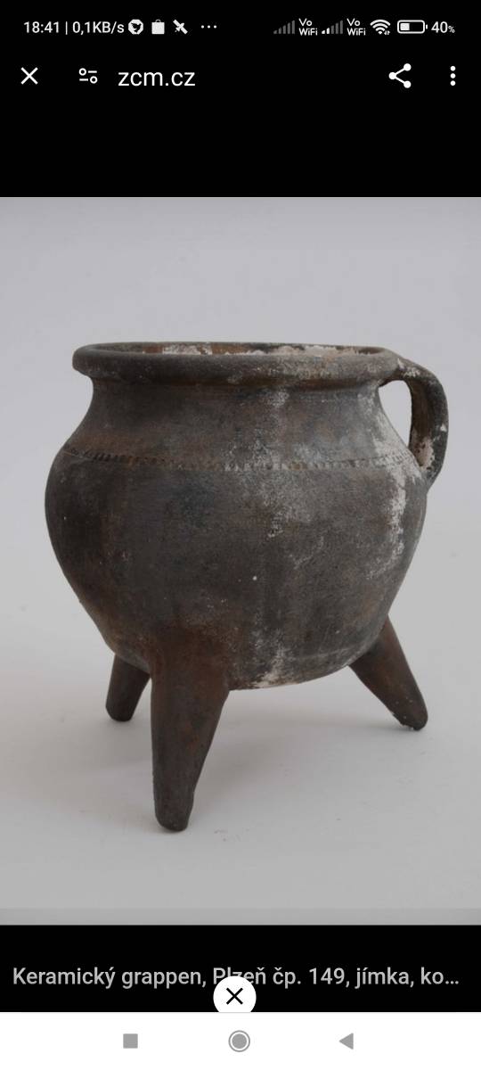 To asi ne, tohoto typu keramiky tu jsou plná pole. Většinou člověk v hlíně dobře rozpozná zlomek ucha, nebo okraje nádoby. Toto je takový méně známý tvar, tak se ptám, jestli to někoho netrkne. Tuším to bude nožka. Třeba něco takového: