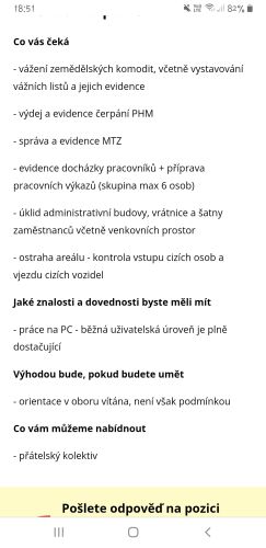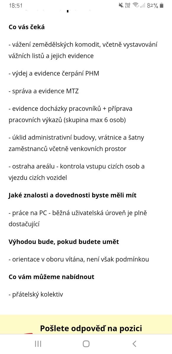 Za mě je tam velká výhoda, že nebudete sedět celý den na jedné židli, ale budete mít nějaký pohyb, občas se projdete, budou tam i chlapi, se kterými je lepší spolupráce.