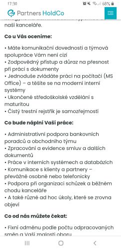 Nechci společnost Partners propagovat, ale pokud vím, tak je Partners seriózní společnost a toto dude práce v její pobočce, v kanceláři. Šla bych do toho, nic neriskujete, a po informačním pohovoru nemusíte říkat ANO. Navíc, ve zkušební lhůtě můžete odejít. Navštivte nějakou pobočku v jiném městě a informujte se o možnosti získání nějakého jejich produktu a uvidíte, jakou práci, stejnou jako dělá člověk, který s vámi jedná, byste dělala. A buď se vám bude líbit, nebo ne. Přeji vám, Kikčo, úspěch v zaměstnáních, která si vyberete. Hlavně žádný strach...z ničeho, všechno má svá řešení!