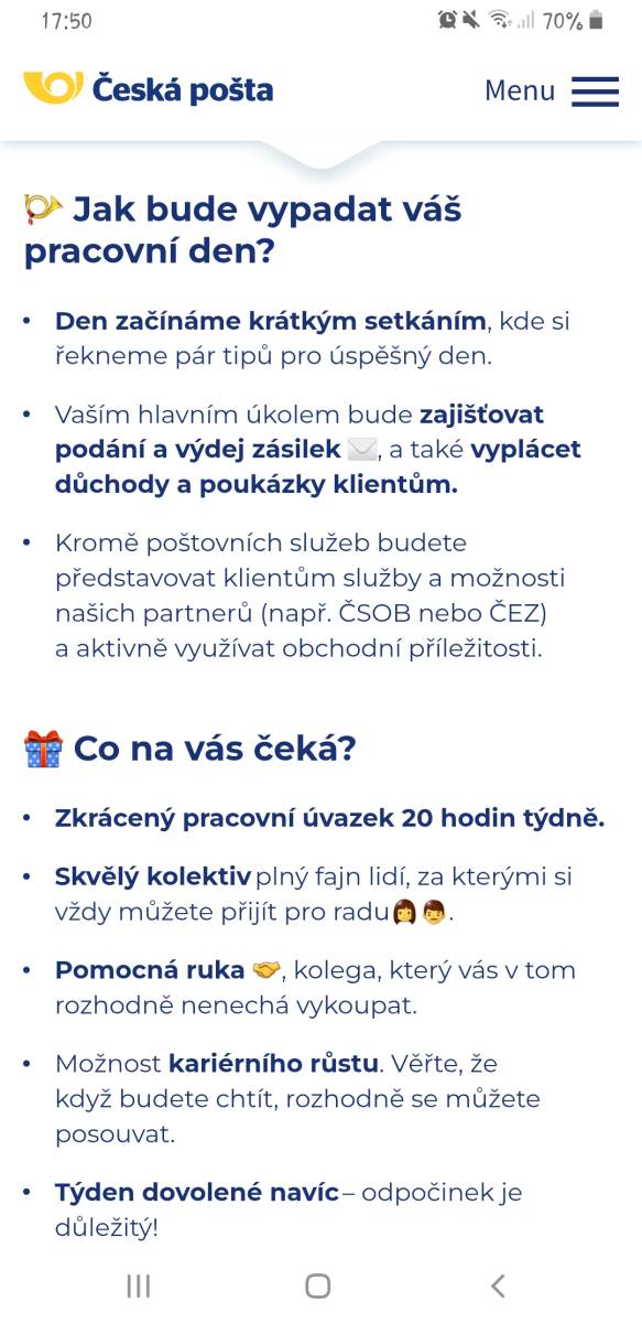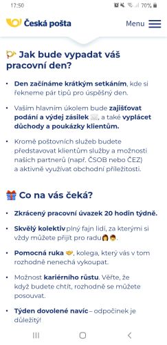 Pokud by šlo jen o příjem a výdej zásilek, tak to je normální skoro dělnická práce (s nějakou tou úředničinou). Ale jestli v tom bude i nějaké to nabízení blbostí, to je něco jiného.